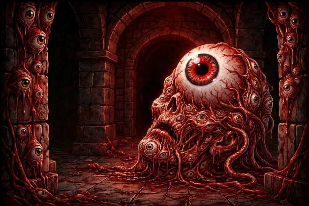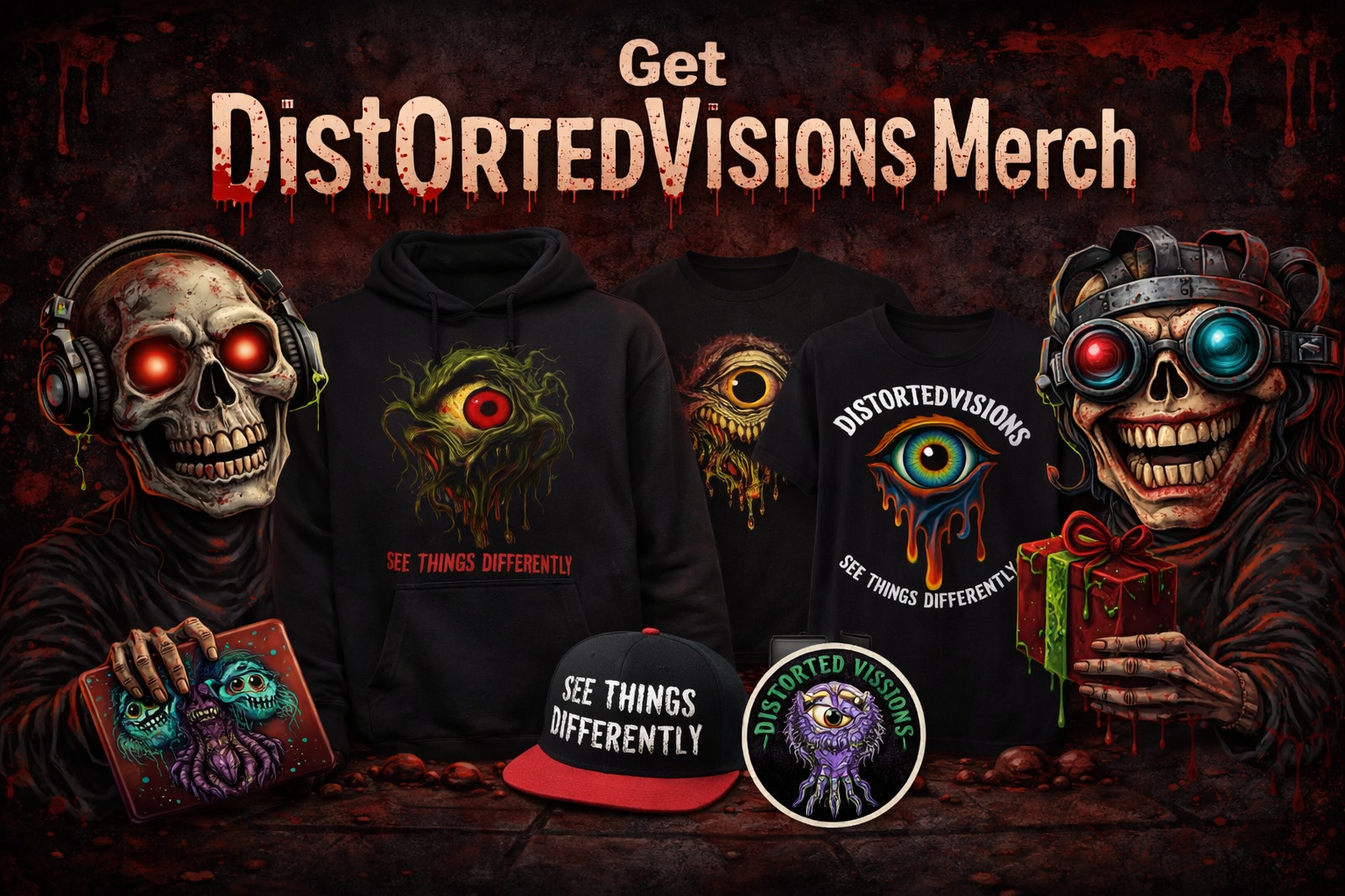 The designs you see here aren’t just “merch”—they are fragments of a fractured reality. From the Dripping Eye to our most recent macabre drops, every piece is built for those who choose to see things differently.